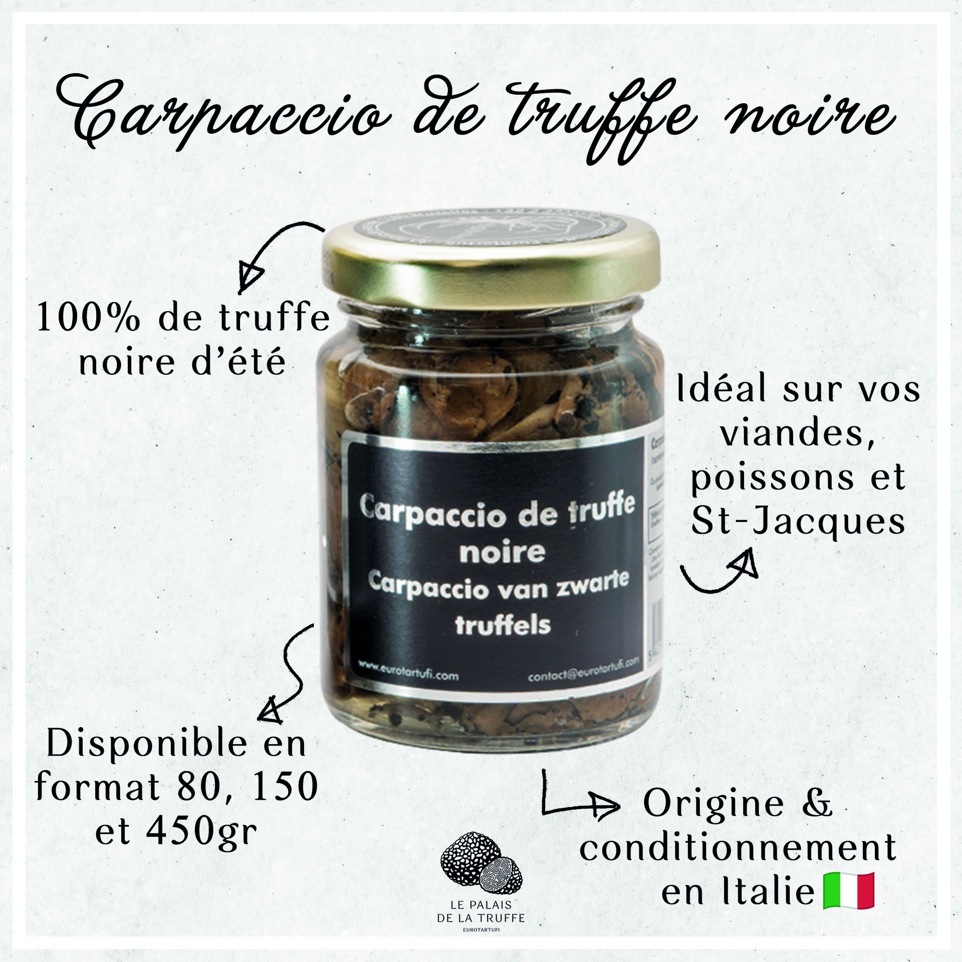 Un merveilleux produit pour accompagner vos plats avec les beaux jours qui arrivent. Que ce soit avec un carpaccio de boeuf à la française ou à l'italienne, avec des oeufs brouillés ou des pâtes ... ces lamelles de truffe apporteront une délicate et élégante note truffée à vos préparations.